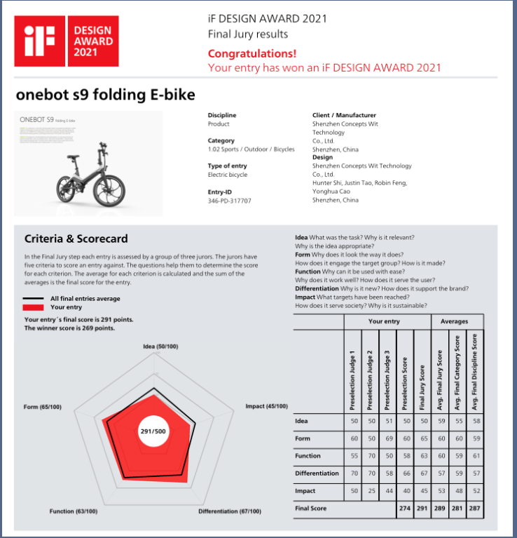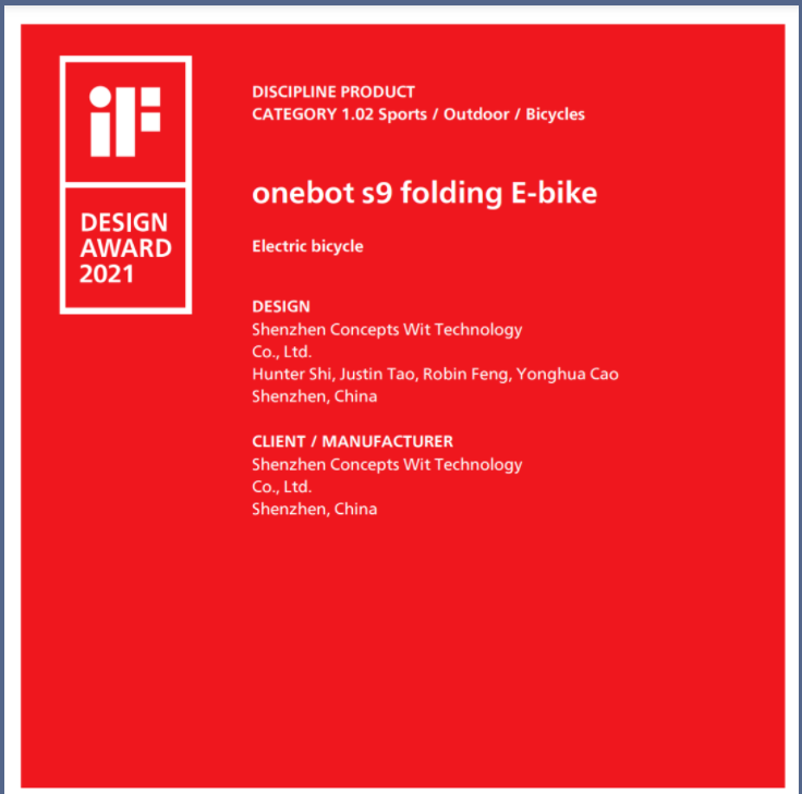 概念智慧"S9"電動自行車,斬獲德國 IF 工業設計獎。