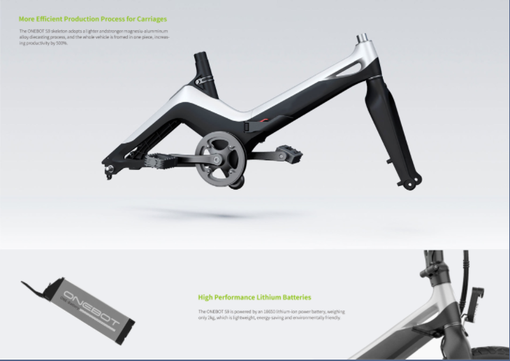 S9采用新型優質材料鎂合金,整車車架一體壓鑄成型,既解決了鐵車架和鋁車架普遍存在的焊道不整齊、焊接有毛刺、焊穿孔、漏焊等現象,又依托橫向專利(專利號:2021108474.9.8)折疊設計,提高仿制門檻而確保了產品的唯一性。